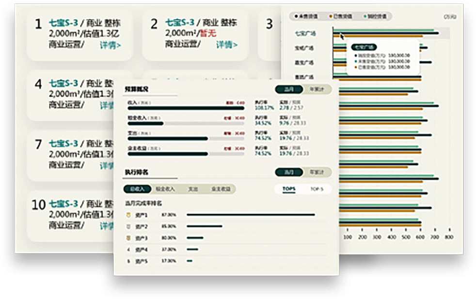 提升资产管控能力,把握资产全盘信息,促进精细化管理,整合商业资源,提升运营能力,充分释放商业潜能