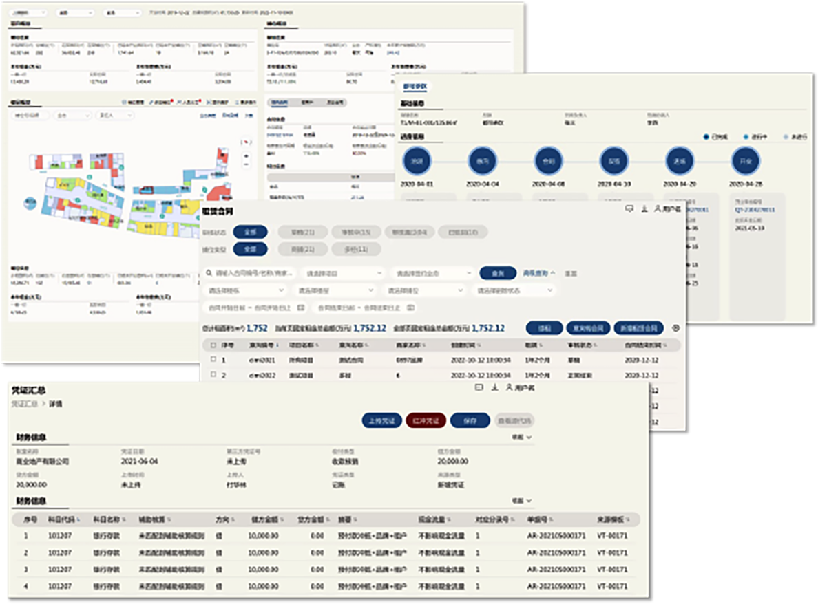 项目经营数据实时同步(商铺、合同、财务数据等),同城市能级各业态、各品牌经营数据同步,可高度拟真实际业务状态和趋势
