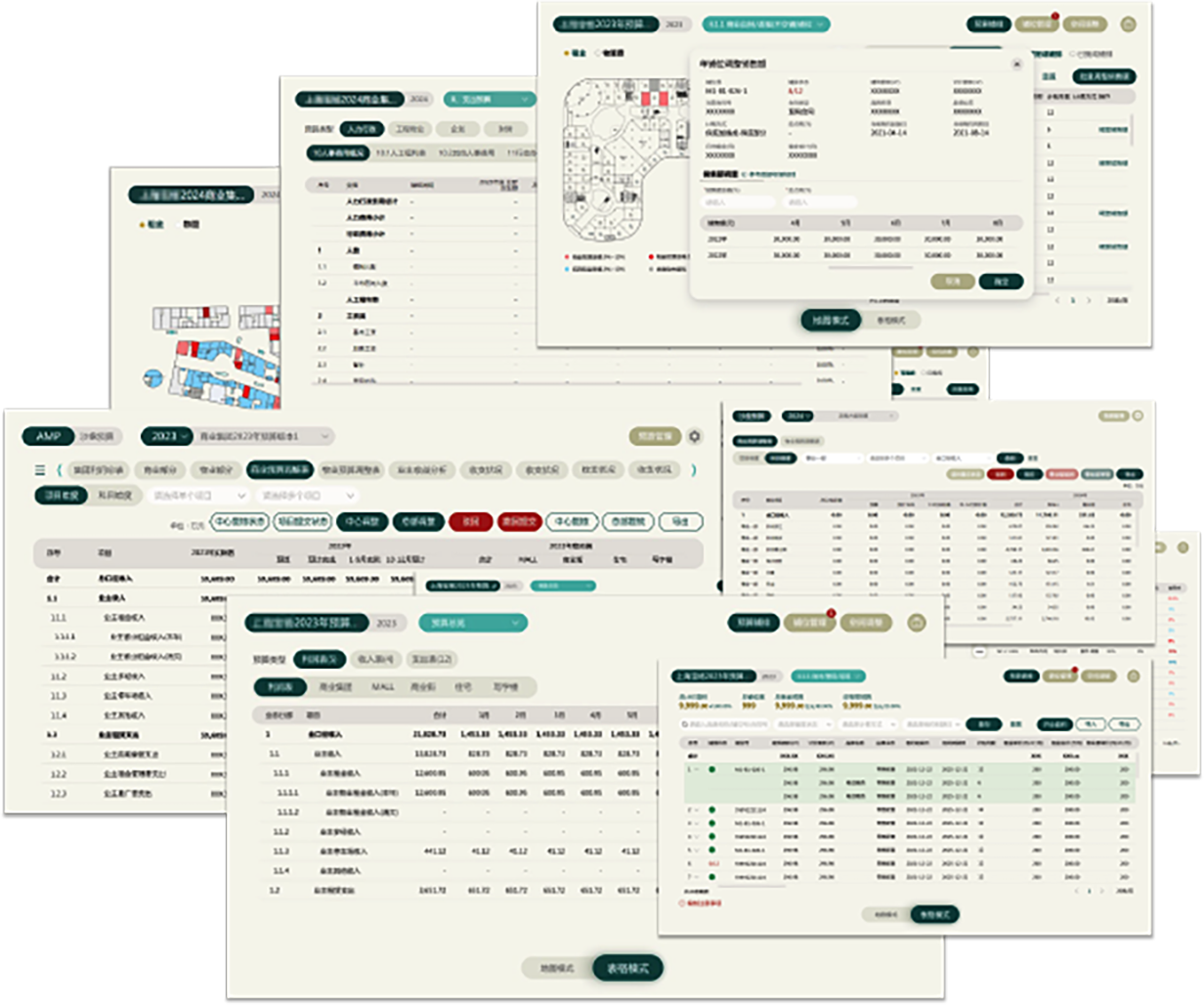 项目经营数据实时同步(商铺、合同、财务数据等),预算底稿高效预填,基于腾讯地图的直观操作,项目利润的实时计算,集团预算的实时汇总,大幅增加预算编制效率